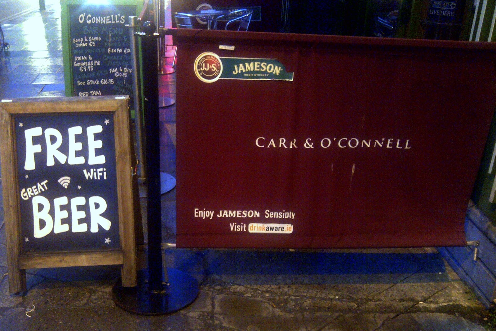 ...no prawie. W Dublinie stężenie pubów na metr kwadratowy jest chyba jednym z największych na świecie więc trzeba być kreatywnym żeby utrzymać się na rynku. Niektórym pomaga lokalizacja ale nie każdy może mieć lokal w okolicach Temple Bar albo otworzyć knajpę w kościele. Czasami wystarczy jednak dobry pomysł, kreda, czarna tablica i już udaję się zwrócić uwagę przechodniów a nawet zwabić parę osób do środka.