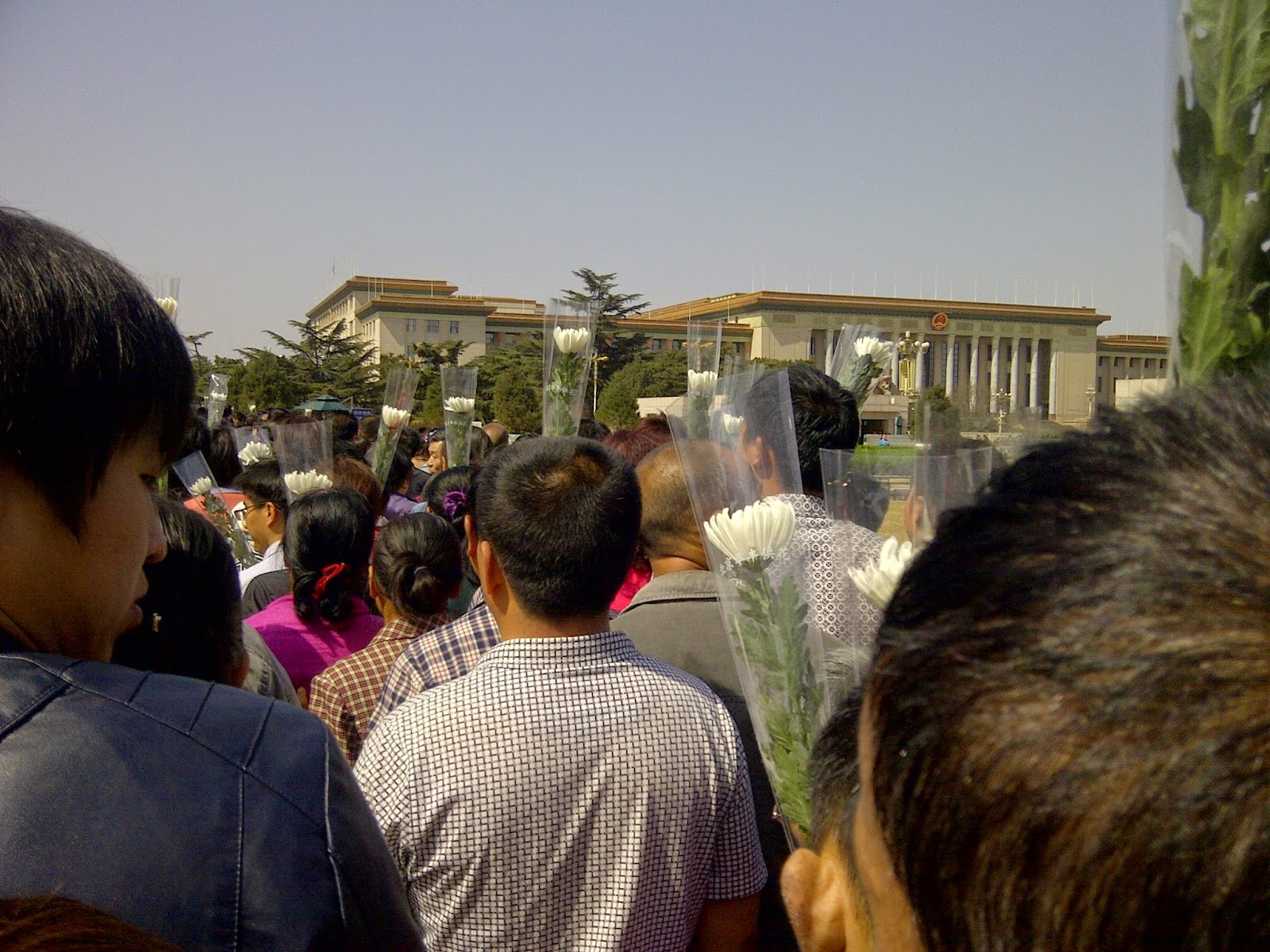 Dostojnym krokiem podchodzi się najpierw do nadnaturalnej wielkości pomnika wodza, gdzie składa się kupione przed chwilą kwiatki. Potem krótki spacer do drugiego pokoju, gdzie w kryształowej trumnie leży sobie ludzkich rozmiarów woskowa laleczka. Szybki rzut oka i już wypraszani jesteśmy dalej, żeby przy wyjściu z mauzoleum móc kupić zegarek z Mao, wachlarz z Mao, krawat z Mao, ołtarzyk z Mao i inne przedmioty niezbędne w życiu każdego Chińczyka.