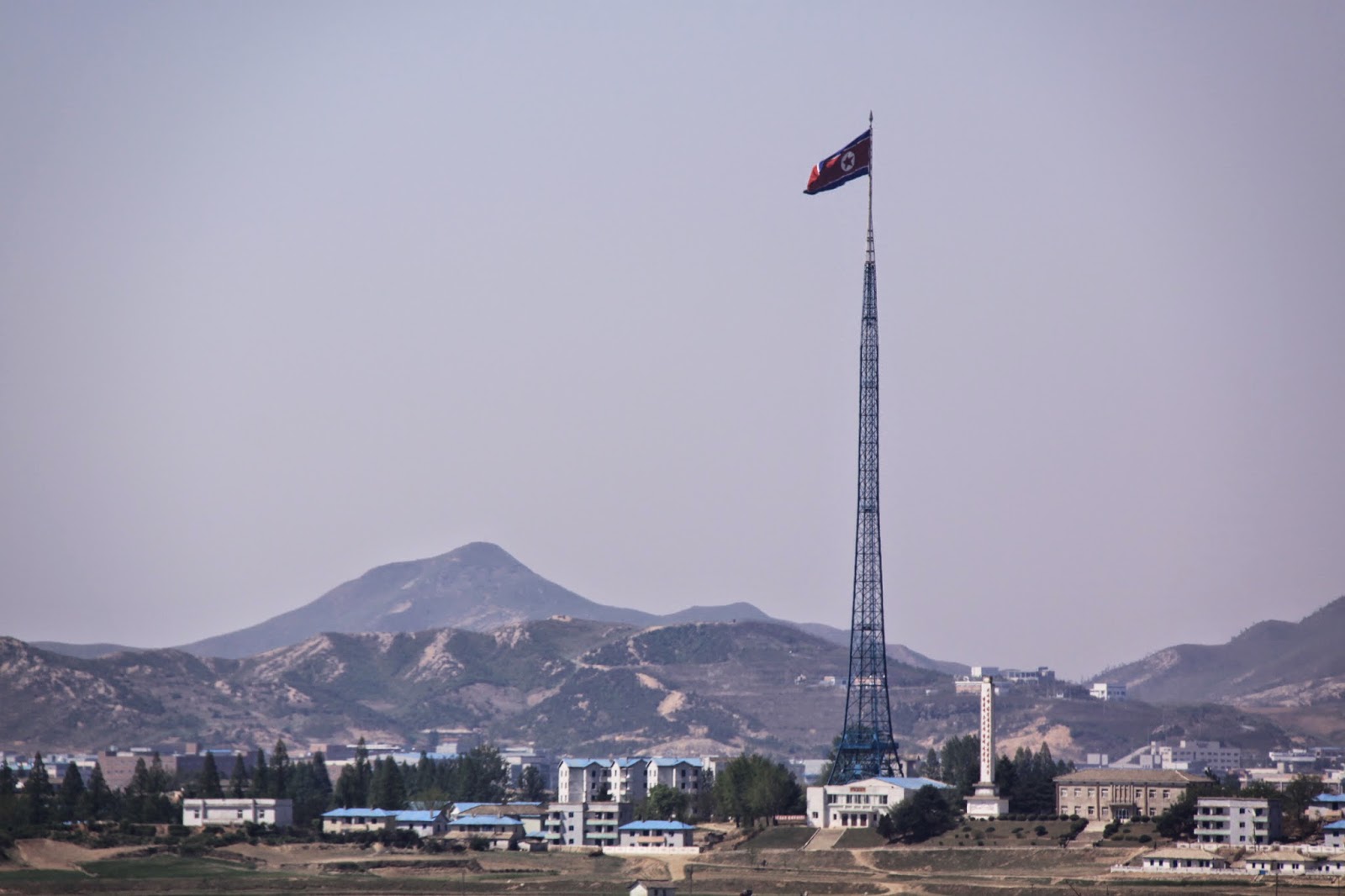 flagą czy ilość pięter w budynkach po obu stronach (Korea Północna